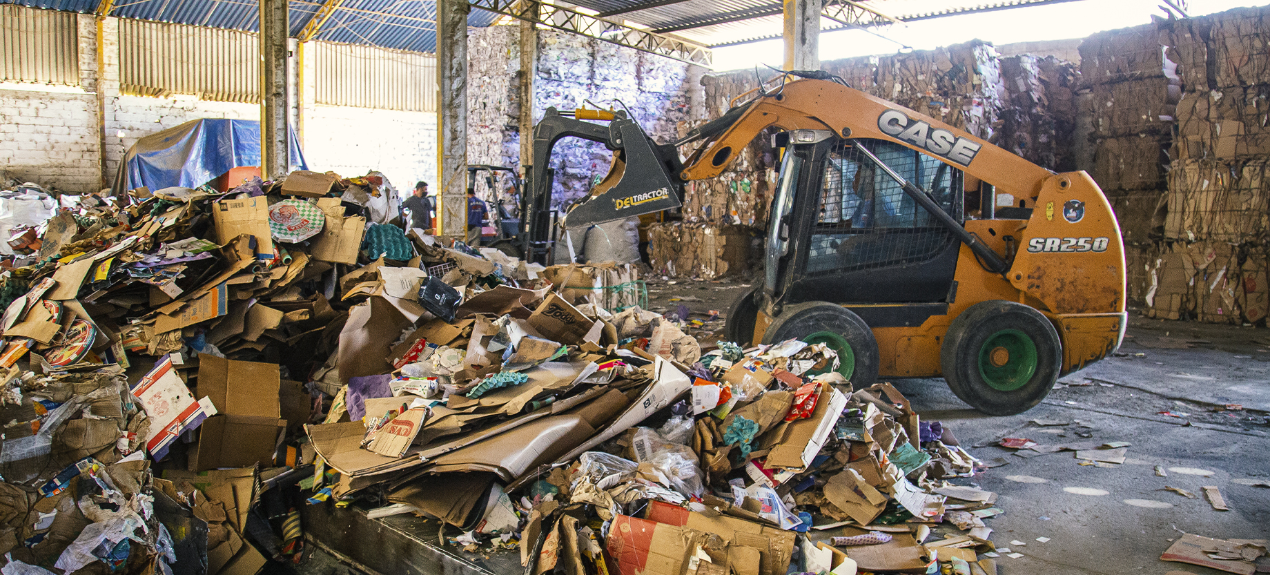 Após serem depositados em uma esteira, há separação de materiais resultando na excelência da qualidade do material ao final do processo de enfardamento.
